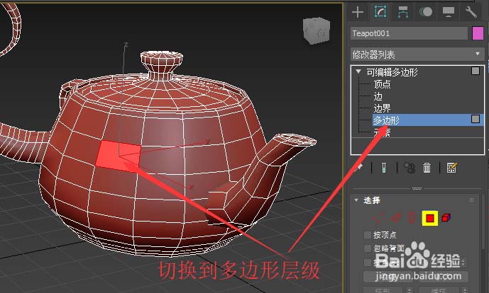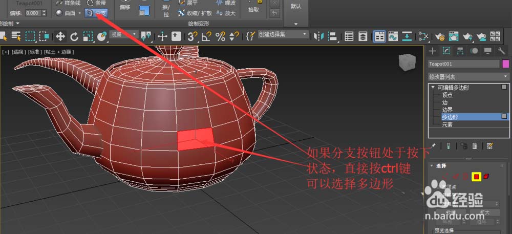 4、或者,我們也可以切換到多邊形層級,選中一個面,再按下分支按鈕。