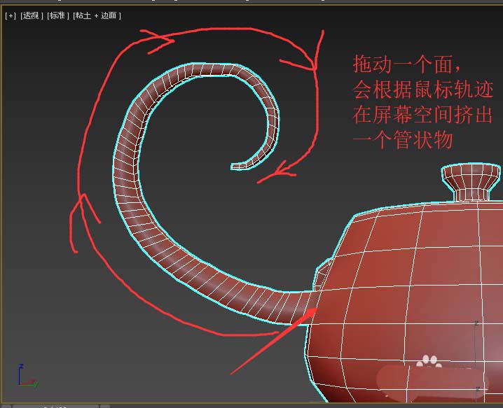 3、按下分支按鈕,直接拖動一個面,會根據鼠標軌跡在屏幕空間擠出一個管狀物。