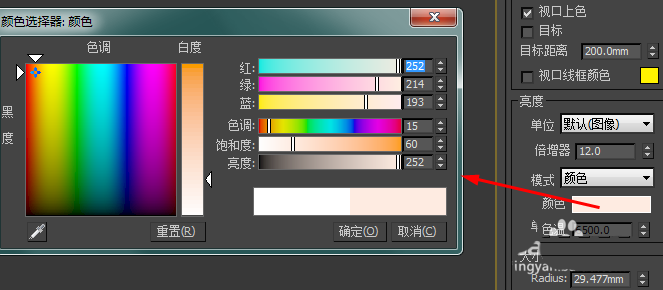 4、將燈光的顏色修改為暖色調