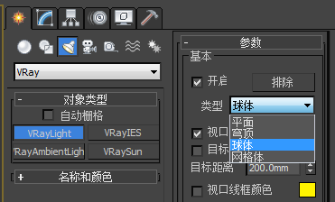 2、點擊VRayLight,將燈光類型修改為球體