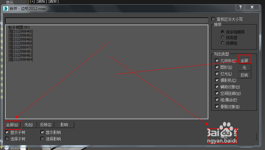 5、選中所有文件之后,我們需要點擊左邊及右邊的“全部”,然后點擊“確定”。