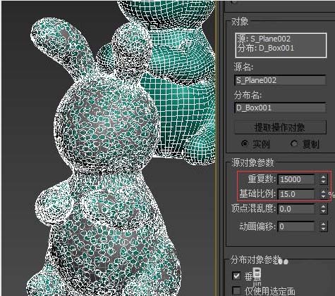 6、修改參數(shù),重復(fù)數(shù)15000個(gè),大小自己控制,只能小不能大~所以一開始可以把葉子做大點(diǎn)。