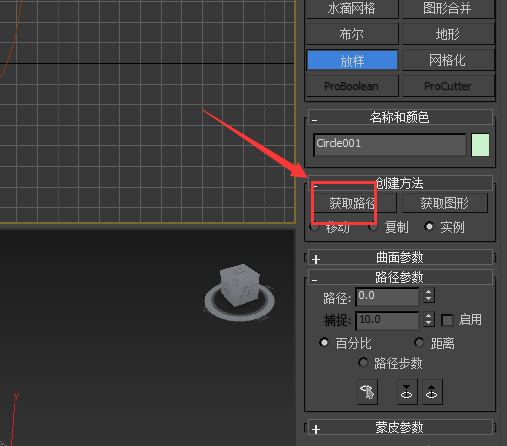 7、選擇圓形在復(fù)合對象放樣選項,如圖所示: