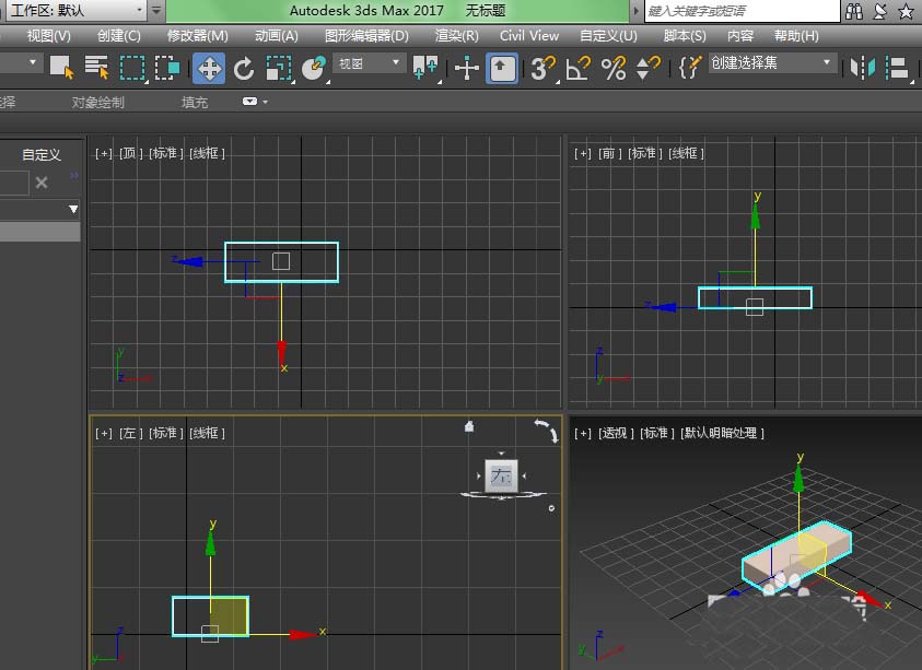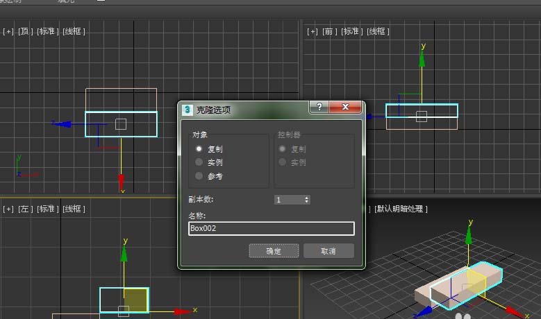 3、然后在左視圖上按shift并拖動長方體復制一個同樣的長方體。使該長方體的左下點與原長方體的右上點對齊。