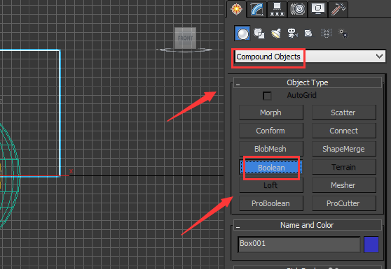 7、選擇較大的球體將模式切換為compound objects,并找到Boolean選項,如圖所示: