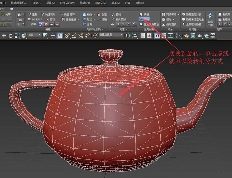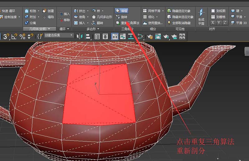 3DSMAX建模水壺的時候,對多邊形的三角剖分不滿意,或者修補多邊形后出現三角剖分不協調,想要修改模型的三角剖分,下面我們就來看看詳細的教程。