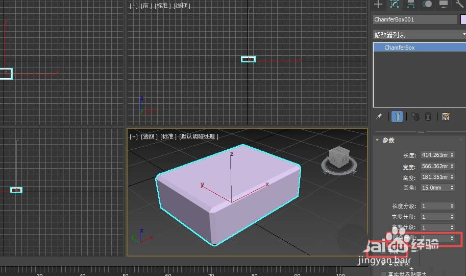 6、如果想得到直角的效果,可以設(shè)置圓角分段為“1”,并將平滑去掉√。即可得到如下效果。