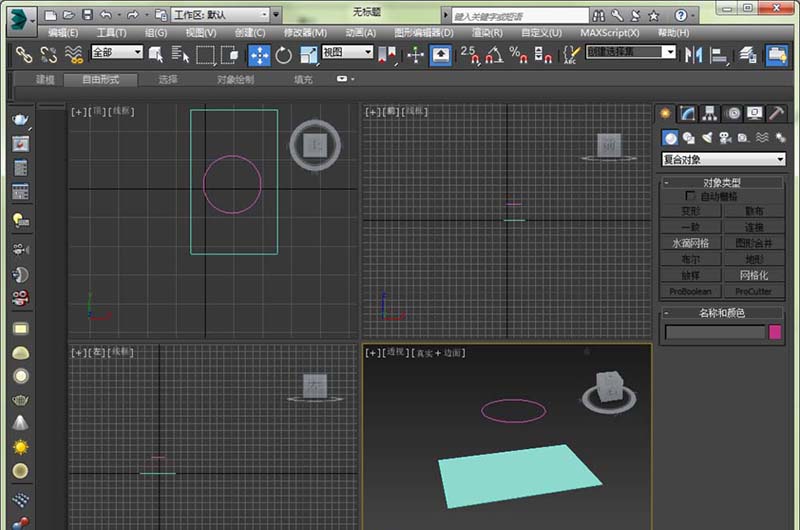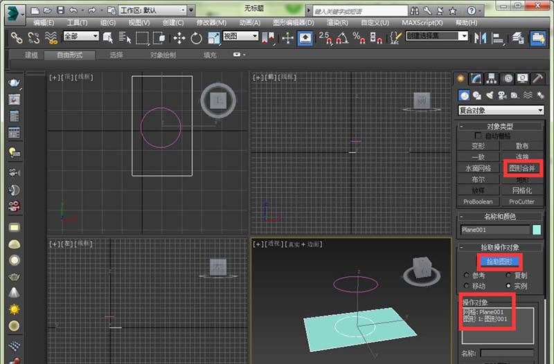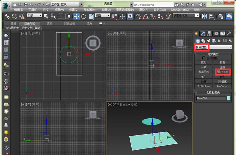 2、第一反應的話,應該是用布爾運算,但是布爾運算會導致很多亂七八糟的線。所以我們這里選擇用復合對象中的圖形合并。