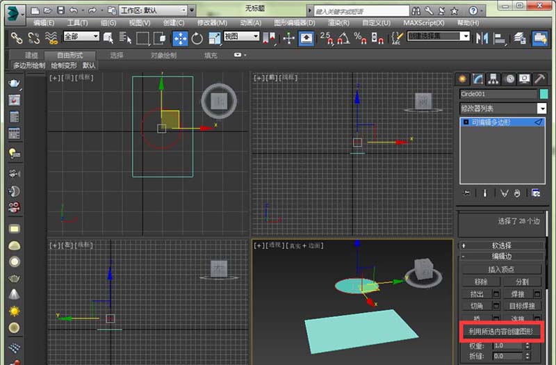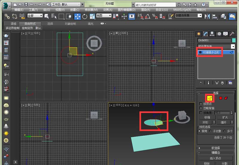 3、先選擇圓形,轉(zhuǎn)換成可編輯多邊形,將邊提取出來(因為在作圖的時候邊界線可以沒有這么簡單)。