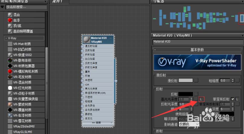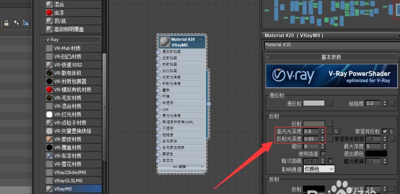 3、單擊高光光澤度后的“L”按鈕,是高光光澤度可用,設置高光光澤度為0.8,反射光澤度為0.85;