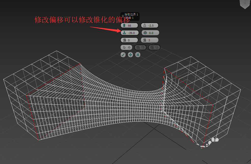 7、偏移與錐化配合使用。如果有錐化,通過修改偏移和以改變錐化的中心位置。如圖。