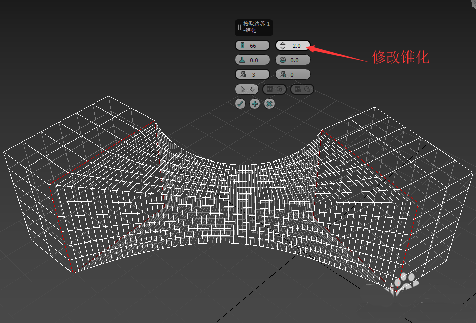 6、通過修改錐化,為負是向里收縮,為正是向外鼓出,可以形成如圖所示效果。