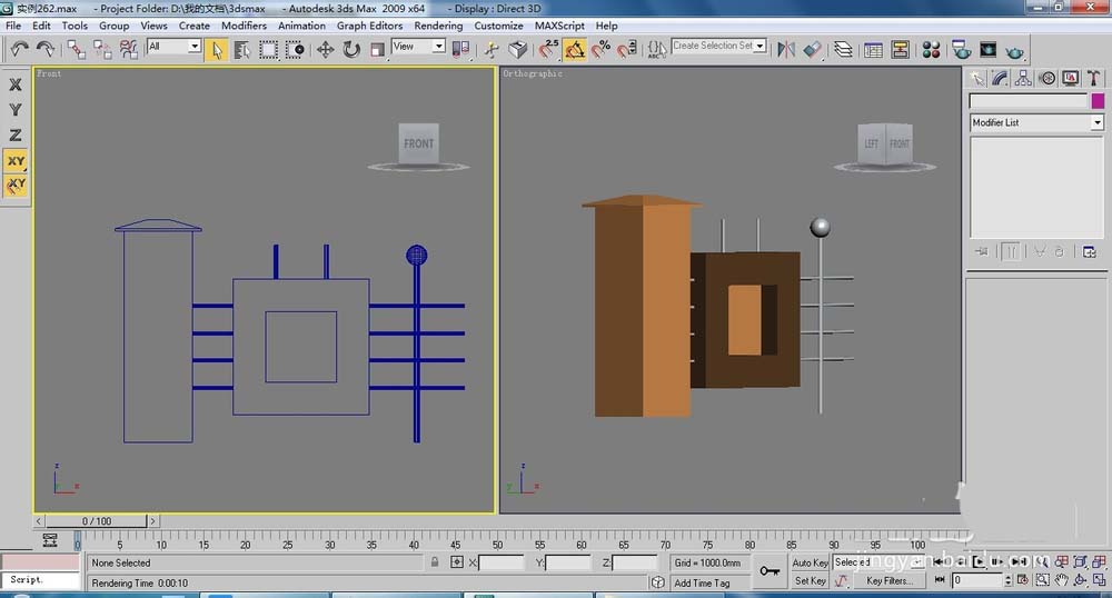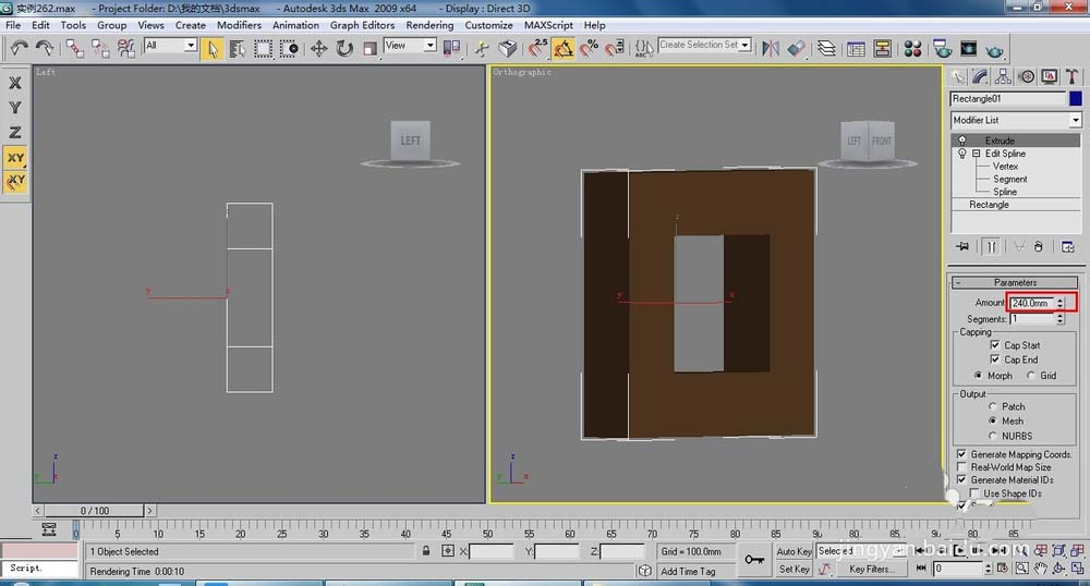 1、在前視圖中繪制一個1000*1000的矩形,添加【Edit Spline】(編輯樣條線)命令,進入(樣條線)層級,添加一個數(shù)量為240的輪廓,在添加【Extrude】(擠出)命令,設置擠出數(shù)量為240,如下圖所示。