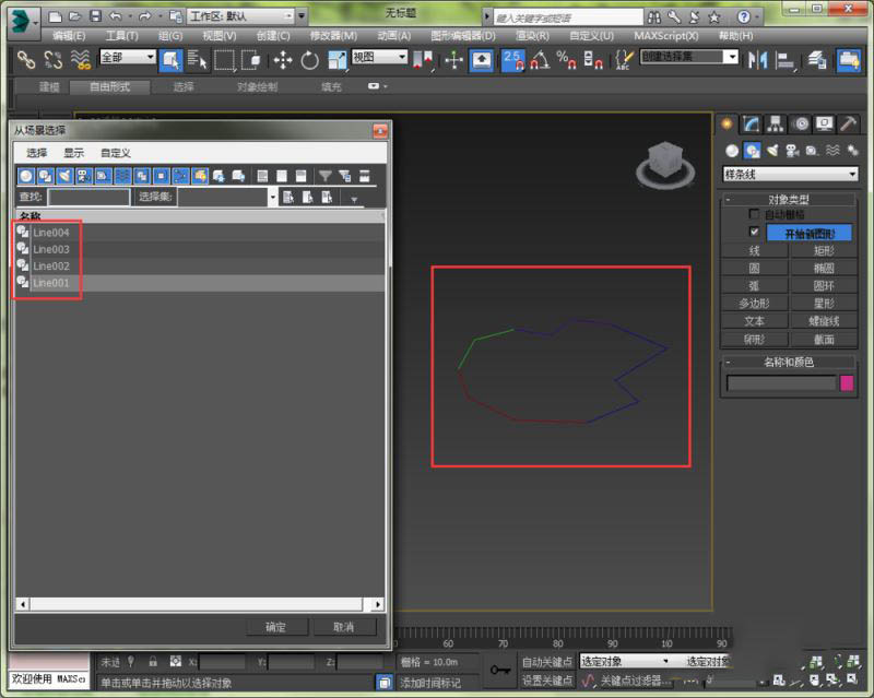 1、首先我們?cè)?dmax視圖區(qū)畫上幾條線。我這里有畫4條線,雖然看上去他們是首尾連接的,但其實(shí)都是單獨(dú)的線,分別是line1 line2 line3 line4