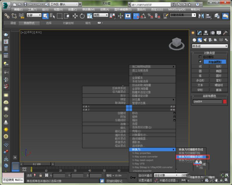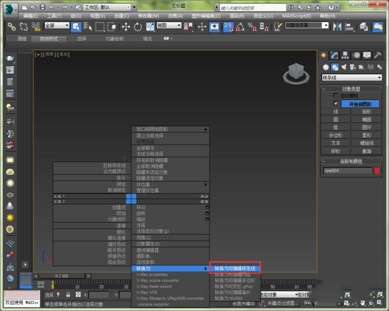 2、任選一條線將其轉(zhuǎn)換為“可編輯樣條線”。我這里就選擇line4,然后右擊選擇轉(zhuǎn)換為可編輯樣條線