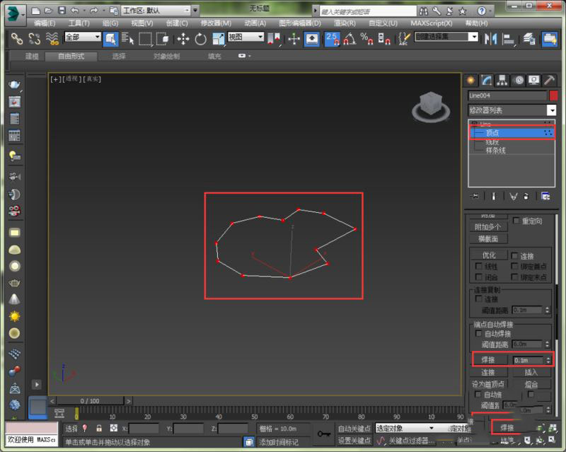 5、這時(shí)我們可以選擇全部的頂點(diǎn)用焊接功能。這里設(shè)置一個(gè)合理的焊接閾值,然后選擇所有的頂點(diǎn),點(diǎn)擊焊接。要注意點(diǎn)與點(diǎn)的距離,不能大于這個(gè)閾值,否則都會(huì)焊接在一起了。