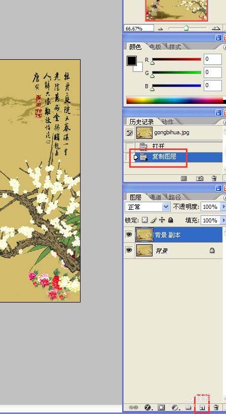 5、用photoshop打開剛才加載給材質漫反射通道的貼圖圖片。并復制圖層。