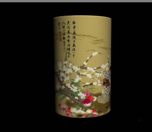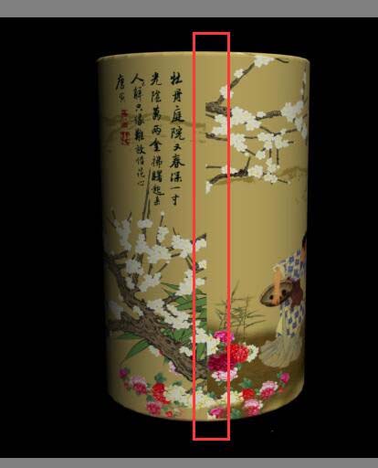 3、仔細觀察,會發現貼圖在模型上存在接縫(圖案首位先接的界限),影響模型美觀和真實性。通過調整貼圖各項數據和調整貼圖UV坐標等方法均為有效解決。效果如圖:(紅框標出的是接縫)