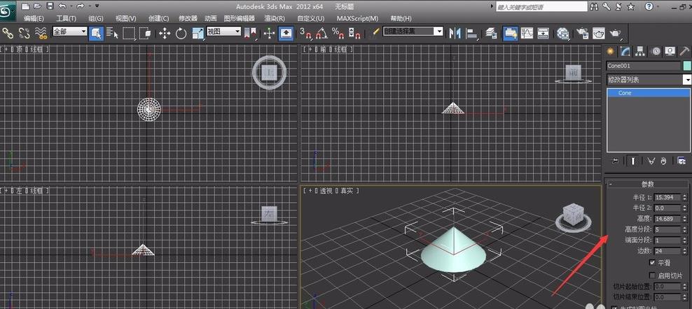 4、在修改面板中可以修改參數改變圓錐體的大小和顏色等,如圖所示。