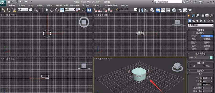 3、再移動光標調整圓錐體頂面半徑大小,單擊即可創建圓錐體,如圖所示。