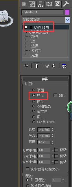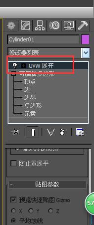 5、一般的方法是為模型整體或者選定的面再重新再添加一個“UVW修改器”進行調整。如圖: