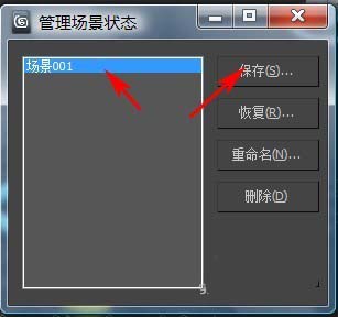 9、保存現有場景狀態的更改。在“管理場景狀態”對話框中,高亮顯示要覆蓋的場景狀態。單擊“保存”按鈕。