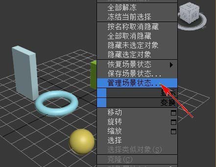 5、重命名場景狀態。右鍵單擊場景,在彈出的菜單中選擇“管理場景狀態”。