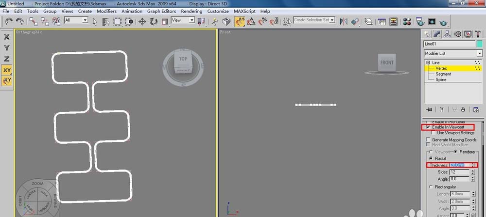 2、將CAD文件導入到Max中并開啟捕捉命令用(線)沿邊沿畫。