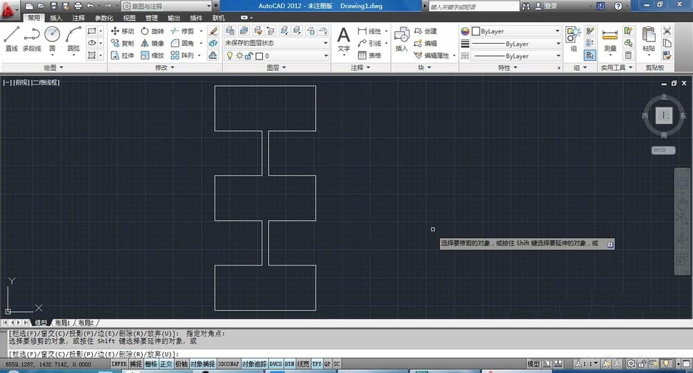 1、我們先用CAD繪制出一個(900*400)的矩形,并組合成如下圖的形狀。