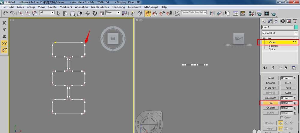 3、按1鍵選擇所有頂點進行【Fillet】圓角處理,如圖。