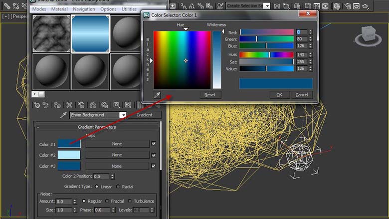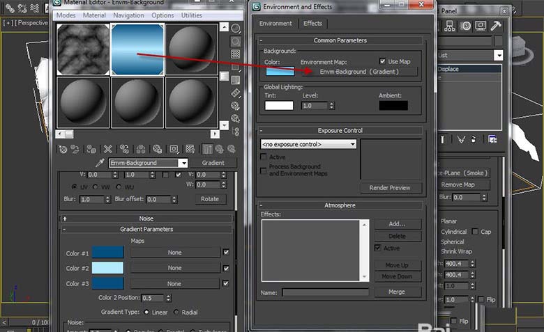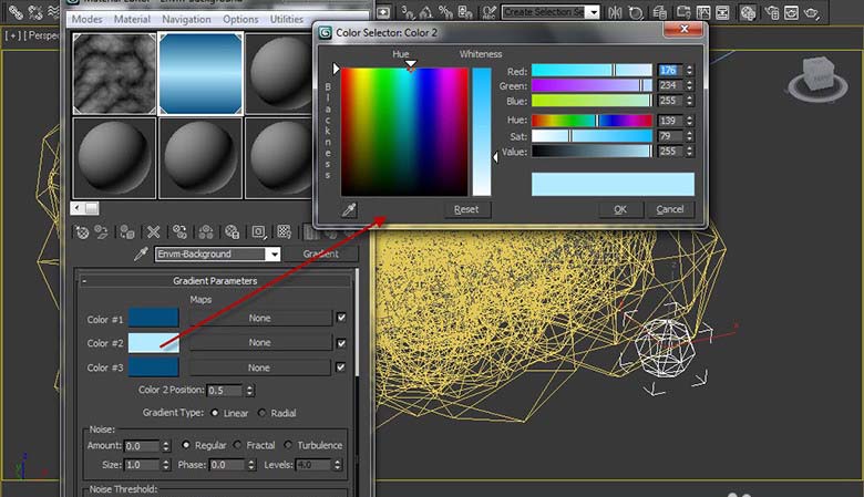 9、返回到材質(zhì)編輯器,創(chuàng)建漸變圖,將其命名為Envm-Background,吸取圖片中的顏色值,這只是要?jiǎng)?chuàng)建一個(gè)背景圖。