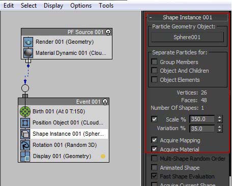 8、創(chuàng)建一個(gè)Shape Instance和pic Sphere,并將比例設(shè)置為350,35%的隨機(jī),是球體的大小不一樣。