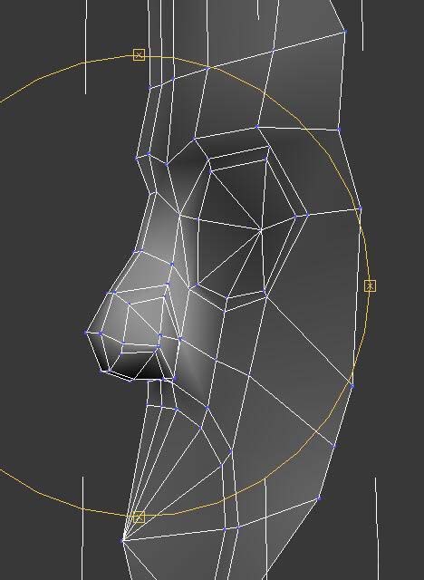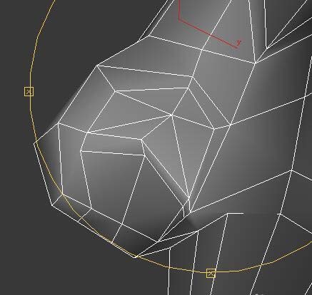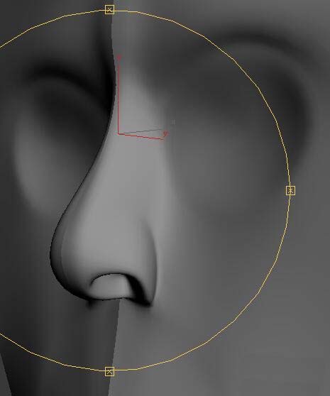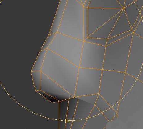 6、通過對頂點的位置調節調整出鼻子的基本形狀。如圖。