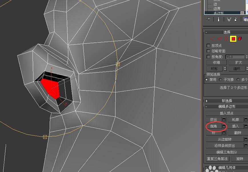 11、選擇鼻孔位置的“多邊形”,并進行“倒角”操作,參數自己調整至合適位置。