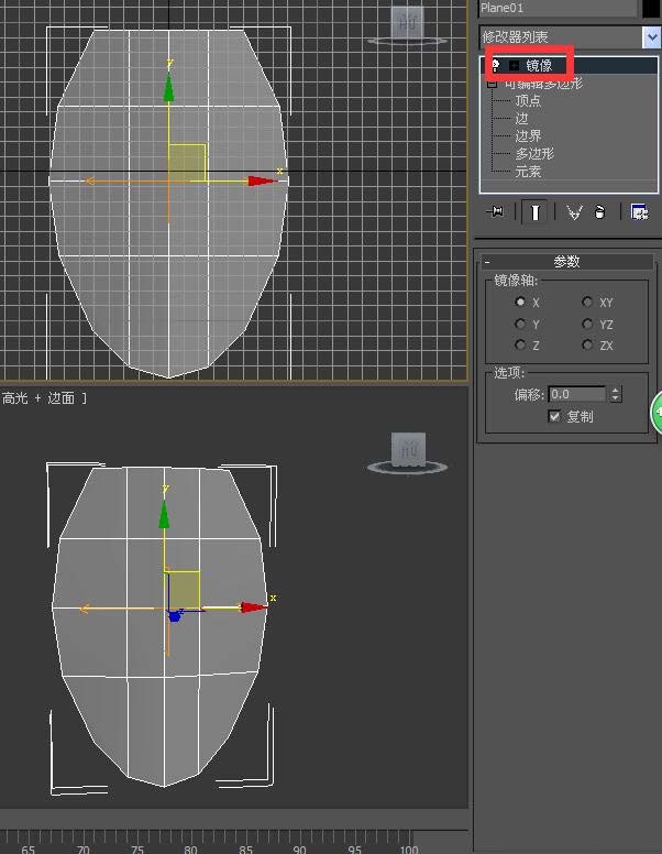 4、刪除一半的多邊形,然后對模型使用“鏡像”修改器,并勾選“復制”選項。