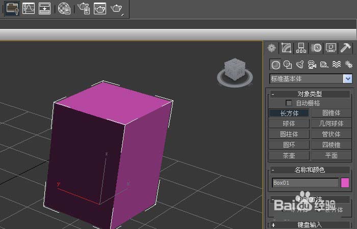 1、打開3d max軟件(這里用的3d max2010版的軟件)。可看到四個視圖窗口,在窗口的右邊,鼠標左鍵單擊面板的【幾何體】按鈕,選擇【標準基本體】,在透視圖上,拖動繪制長方體出來,如下圖所示。
