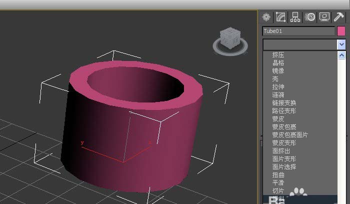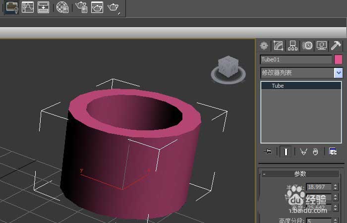 2、鼠標左鍵單擊【修改】面板,可直接修改管狀體,長、寬、高的參數值,修改后,在透視圖上的管狀體就發生改變,如下圖所示。