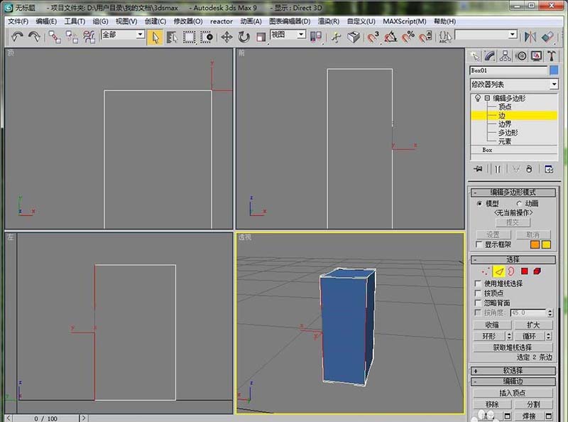3、然后將這個長方體轉換成可編輯多邊形,然后選擇邊層級,我們將一個面分成四段。
