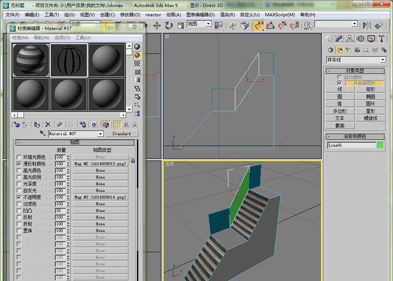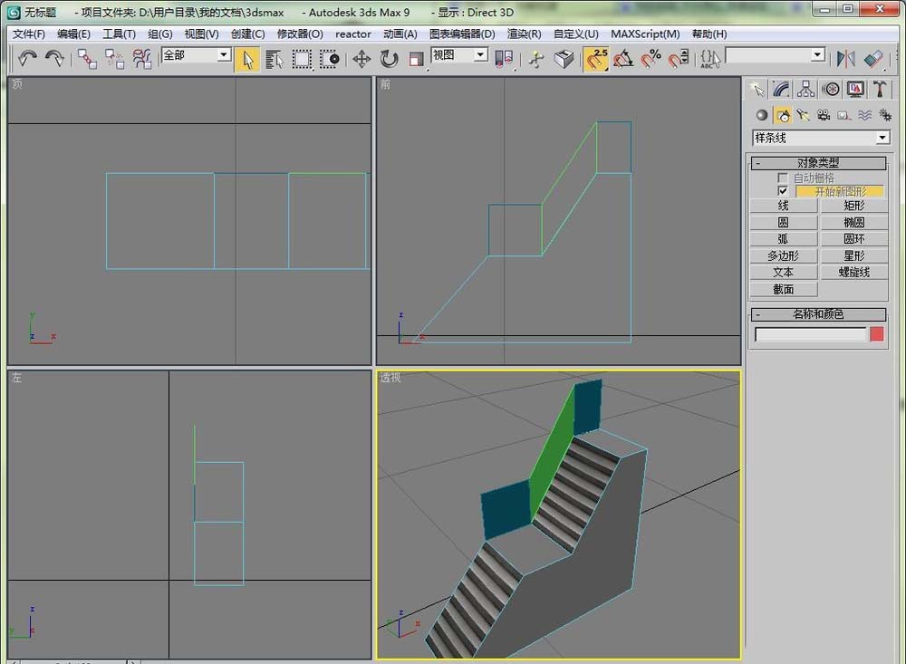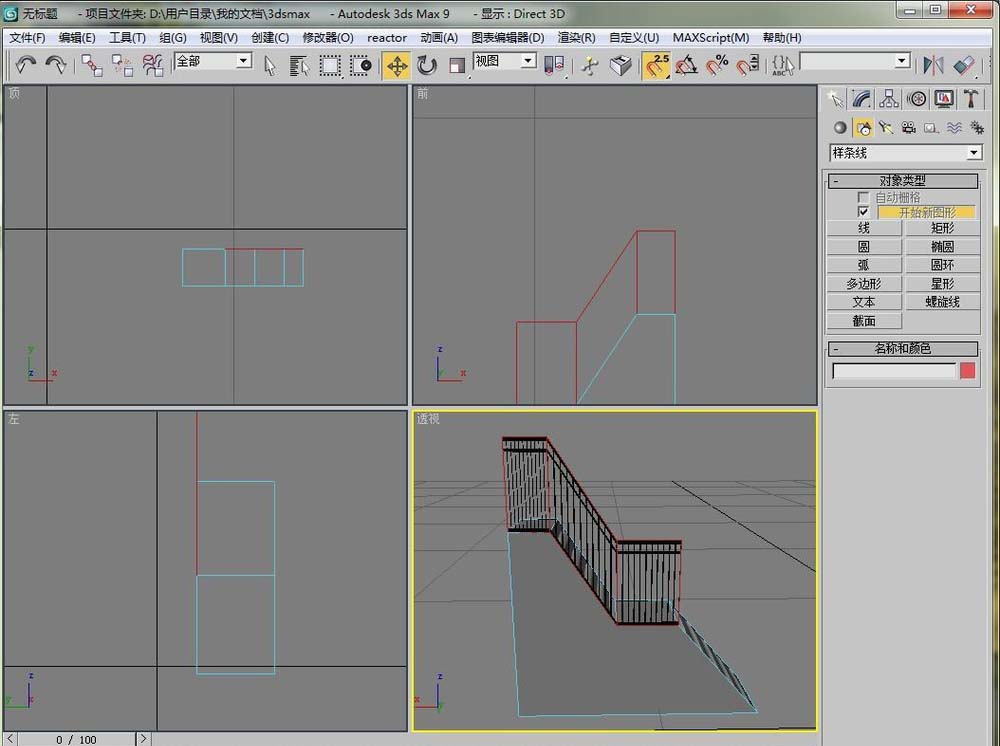 8、如果覺得這個樓梯少了扶手,我們還可以繼續做欄桿扶手。我這里就要樣條線來話。