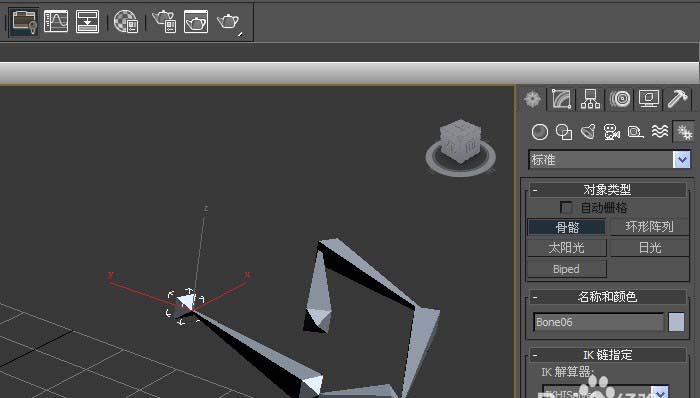 2、在【標(biāo)準(zhǔn)】的面板上,鼠標(biāo)左鍵單擊【骨骼】,接著在透視圖中,拖動(dòng)繪制骨骼對(duì)象出來,如下圖所示。