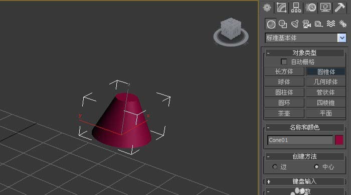 3、在【標準基本體】的面板上,鼠標左鍵單擊(圓錐體),接著在透視圖中,拖動繪制一個圓錐體出來,如下圖所示。