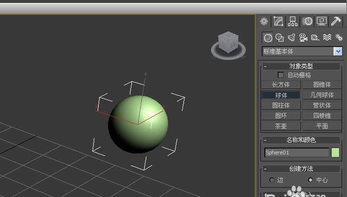 4、在【標準基本體】的面板上,鼠標左鍵單擊(球體),接著在透視圖中,拖動繪制一個球體出來,如下圖所示。
