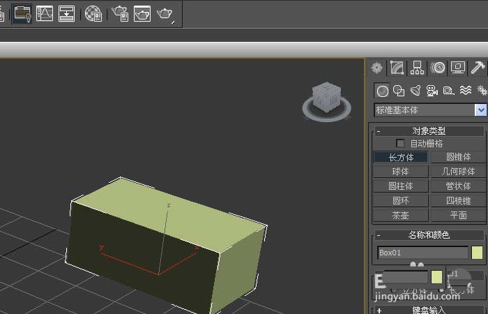 2、在【標準基本體】的面板上,鼠標左鍵單擊(長方體),接著在透視圖中,拖動繪制一個長方體出來,如下圖所示。
