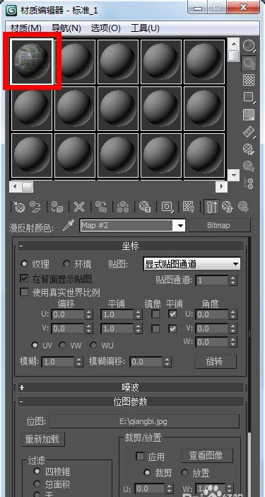 5、如圖,給材質球貼圖之后,材質球有了圖片