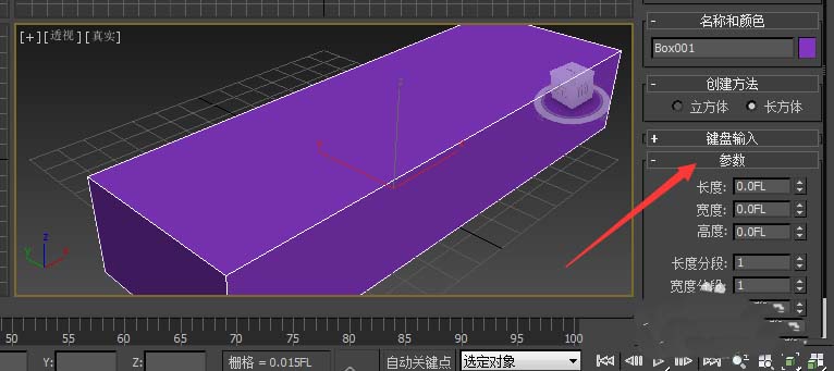 3、在視圖光標中創建一個長方體,這里注意步驟:點一次鼠標橫向或豎向畫出長方形(這時的鼠標一直按著直到畫完長方形)—松開鼠標把光標往上拖(拖到你想要的高度后再點鼠標,在拖動是不要按鼠標)—最后鼠標點擊左鍵結束。當然你可以在參數設置中進行長寬高的設置。