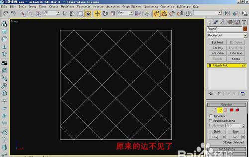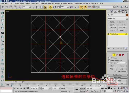 6、這時候的多邊形物體已經初見雛形,然后選擇創建面片時原來的四條邊,用移除命令刪除掉。