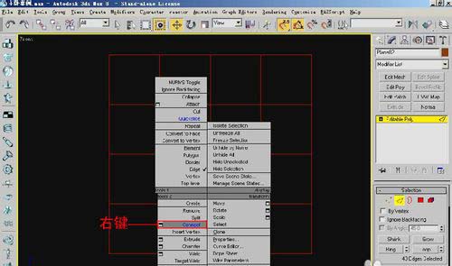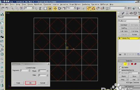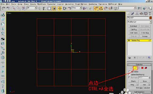 3、進入多邊形的修改面板,選擇第二項——邊,全選場景中所有的邊。