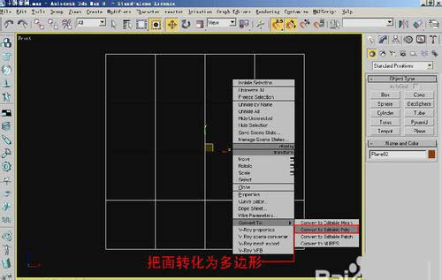 2、在創建出來的面片物體上點右鍵,選擇轉化為多邊形。