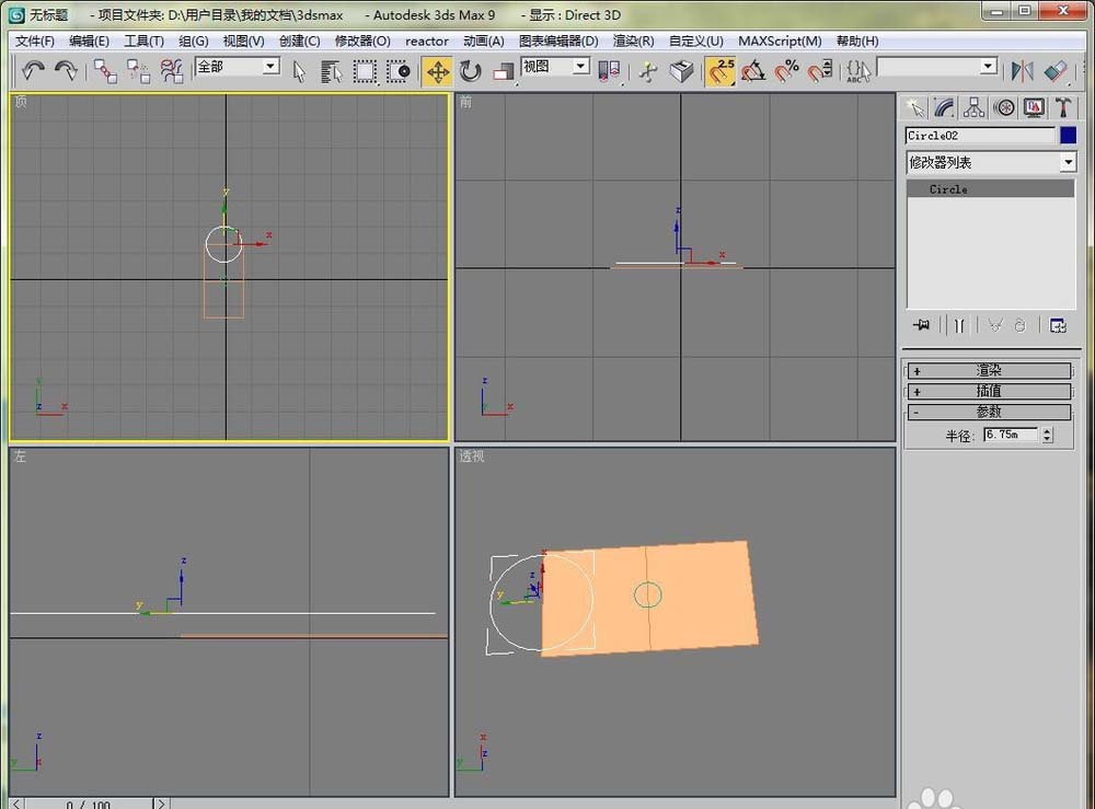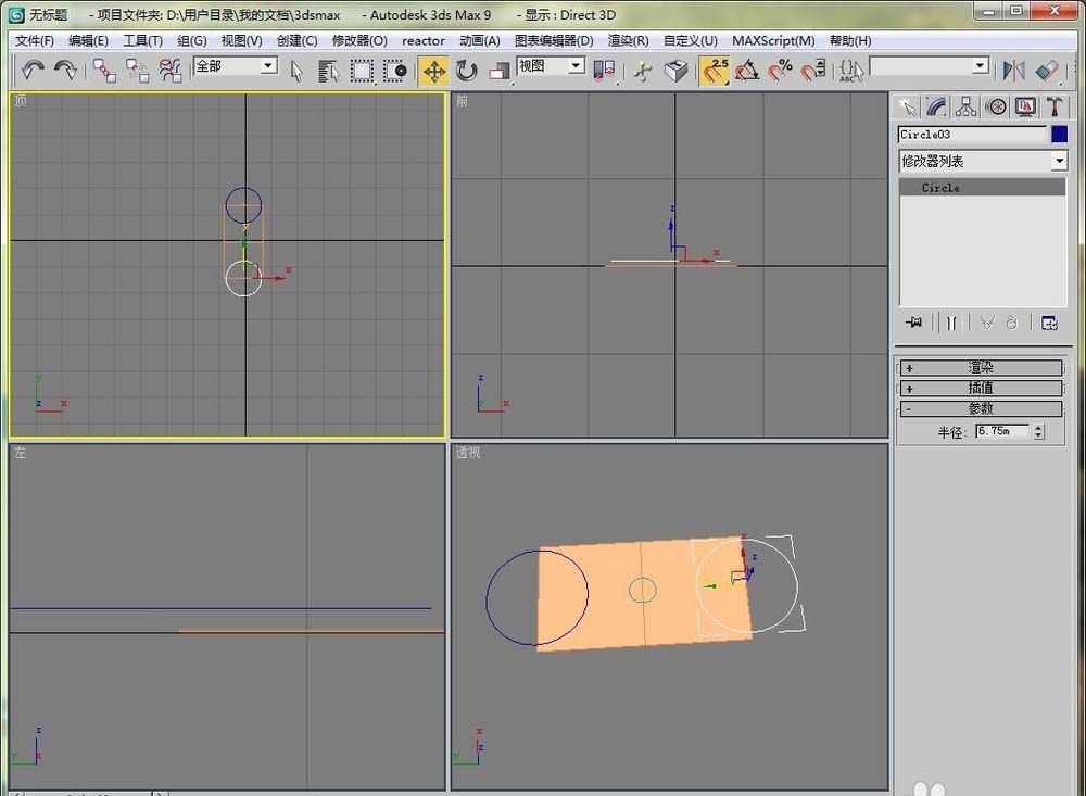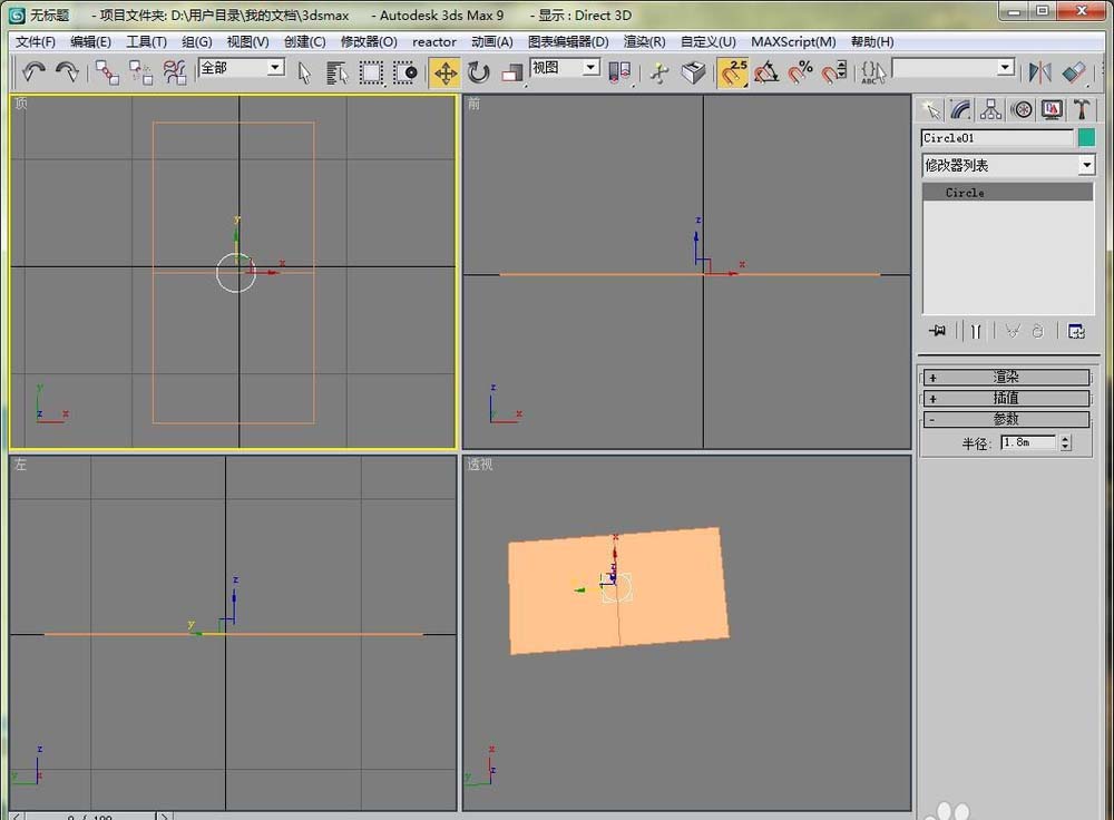 5、設置這個圓的半徑為1.8m,然后結合前視圖和左視圖,將圓移到長方體上方。