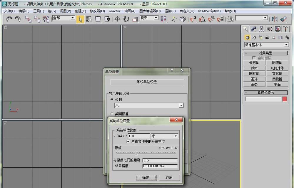 1、打開3dmax,首先要做的就是單位設置,這里把系統(tǒng)單位和顯示單位都設置成米